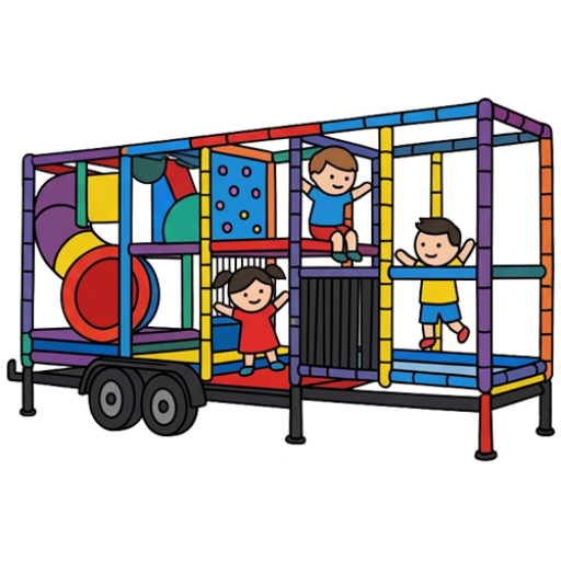 Nossa carreta playground é equipada com brinquedos modulares certificados, pensados para estimular o desenvolvimento motor e social das crianças em um ambiente seguro e supervisionado.